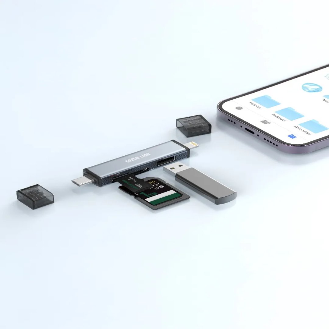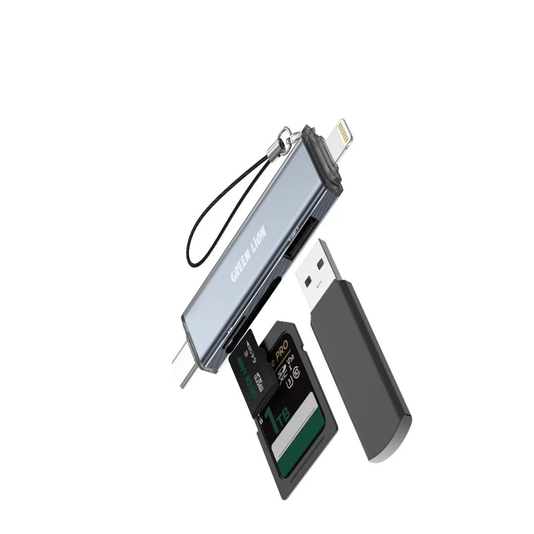 An efficient and versatile solution for data transfers across multiple devices is the Green Lion 3-in-1 Card Reader with USB-C and Lightning Connectivity in Gray. The 480Mbps transfer speed via USB 2.0 provides for fast and reliable transfers of files for TF/SD cards up to 2TB. The device is USB-C and Lightning-interface compatible, thus supporting almost every Windows-, Android-, and macOS-based device. Made out of aluminum alloy and ABS, it is tough yet lightweight. A keychain lanyard comes along for easy carrying. Just plug it in and use it- it requires no additional driver installation, releasing the user from any additional fuss. Comprehensively compatible, this proves to be the best choice for any user who requires quick data transfer options across multiple platforms.