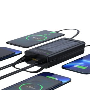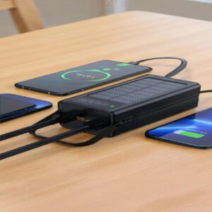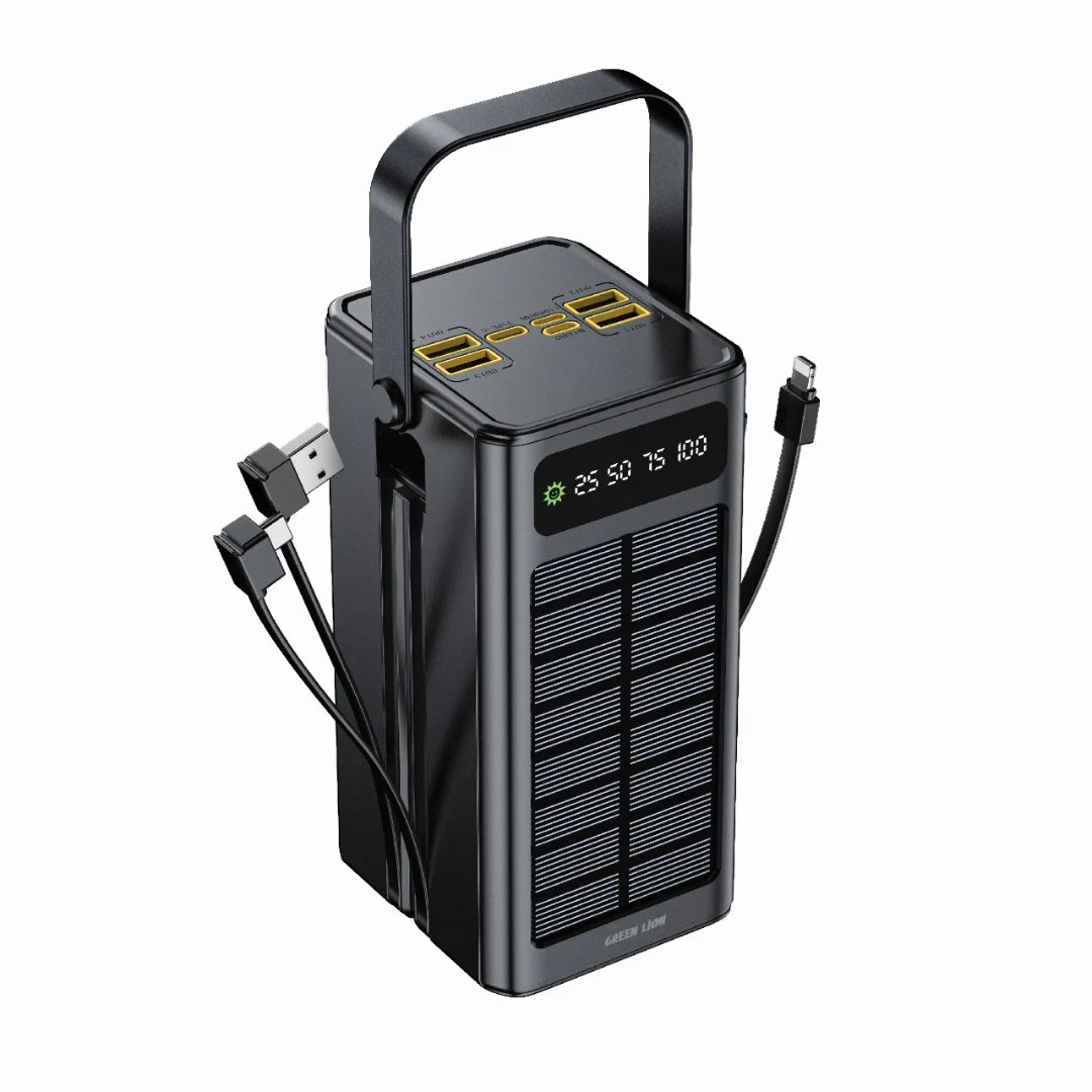 Green Lion Solar X 60000mAh Power Bank is easy to carry and versatile, it embraces a larger range of energy storage, eliminating the need for charging adapters or common applets. It has a massive capacity of 60000mAh, which is to the advantage of charging multiple devices. The solar power input is given at 5V, which can be recharged from sunlight, hence its unmatched reliability during times on the go. The inputs lie between USB-C (PD 18W), USB-Micro, and USB-Lightning (5V/2A). Output ports are provided for USB-C (PD 20W), USB-A1 (up to 22.5W), and USB-A2/A3/A4 (5V/2A) to match fast charging standards of all devices. Its other safety features include a digital display for monitoring, a brand-pride handle for carry convenience, and two emergency light modes, namely, Flash and SOS. With the inclusion of different protection features, it indeed charges safely and efficiently, providing an ideal partner while going on adventures.