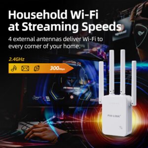 Enjoy stronger and more reliable internet coverage throughout your home or office with the PIX-LINK N300 WiFi Repeater. Designed to enhance and extend your 2.4 GHz WiFi signal, this compact device delivers speeds of up to 300 Mbps, making it ideal for streaming, online gaming, and smooth browsing.