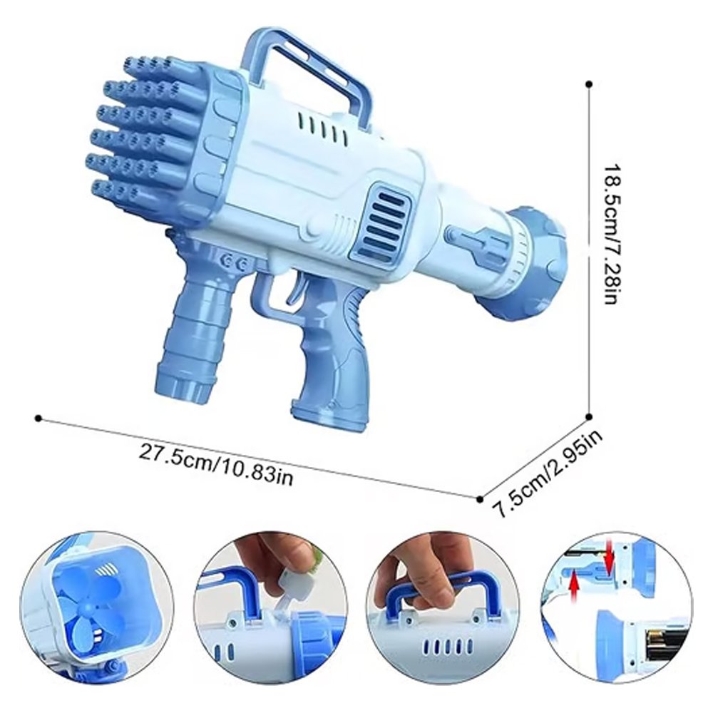 Turn ordinary moments into magical memories with the 32-Hole Bazooka Bubble Machine. This automatic bubble gun features 32 bubble outlets and a powerful motor, delivering a continuous cascade of hundreds of bubbles with just one press of a trigger — perfect for birthday parties, weddings, garden play, picnics, and everyday fun. Lightweight yet sturdy, it’s easy to hold and operate, making it ideal for both kids and adults. Crafted from child-safe, durable materials and featuring a simple fill-and-shoot design, it guarantees hours of carefree entertainment. Add a splash of joy to any occasion and let the bubbles fly!