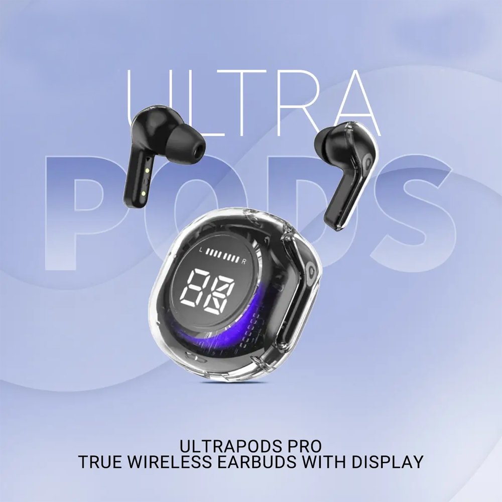 Ultrapods – True Wireless Bluetooth Earbuds with LED Display & Transparent Case
