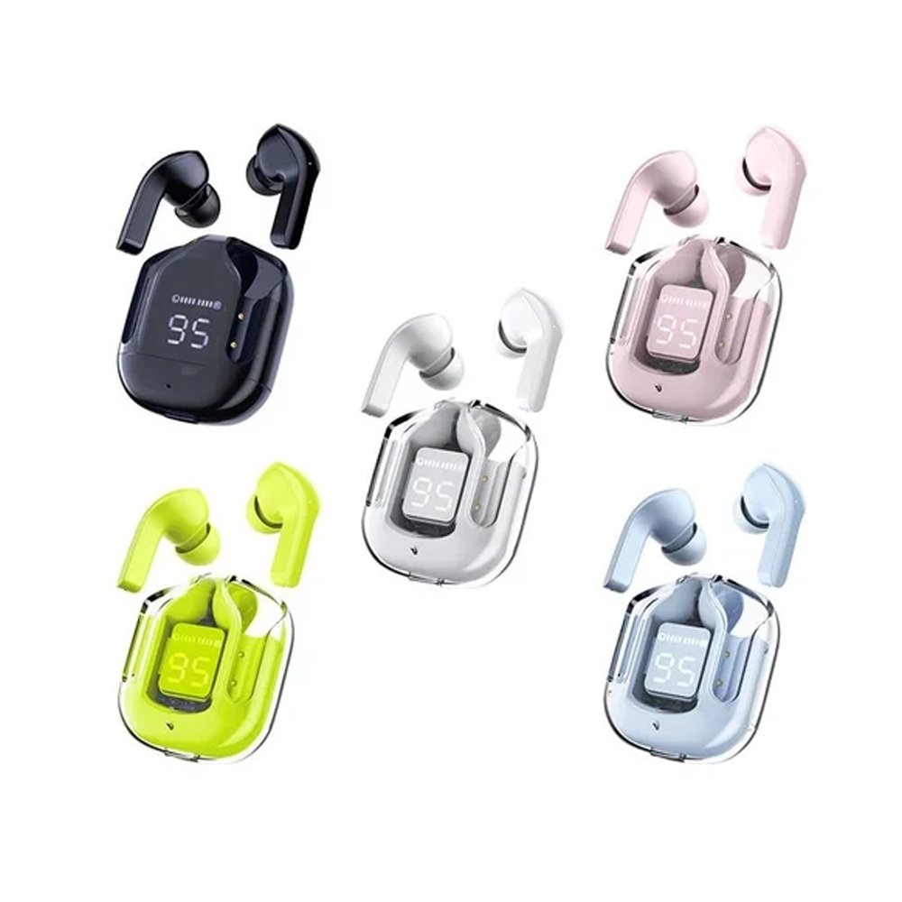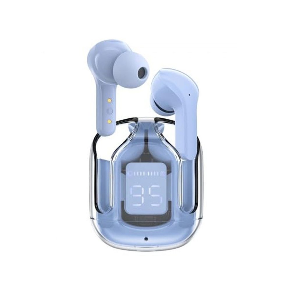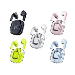 Experience next-level wireless audio with the Ultrapods, designed for style, comfort, and powerful performance. These modern transparent earbuds feature a sleek crystal-clear charging case with an LED digital display, allowing you to check battery levels instantly.